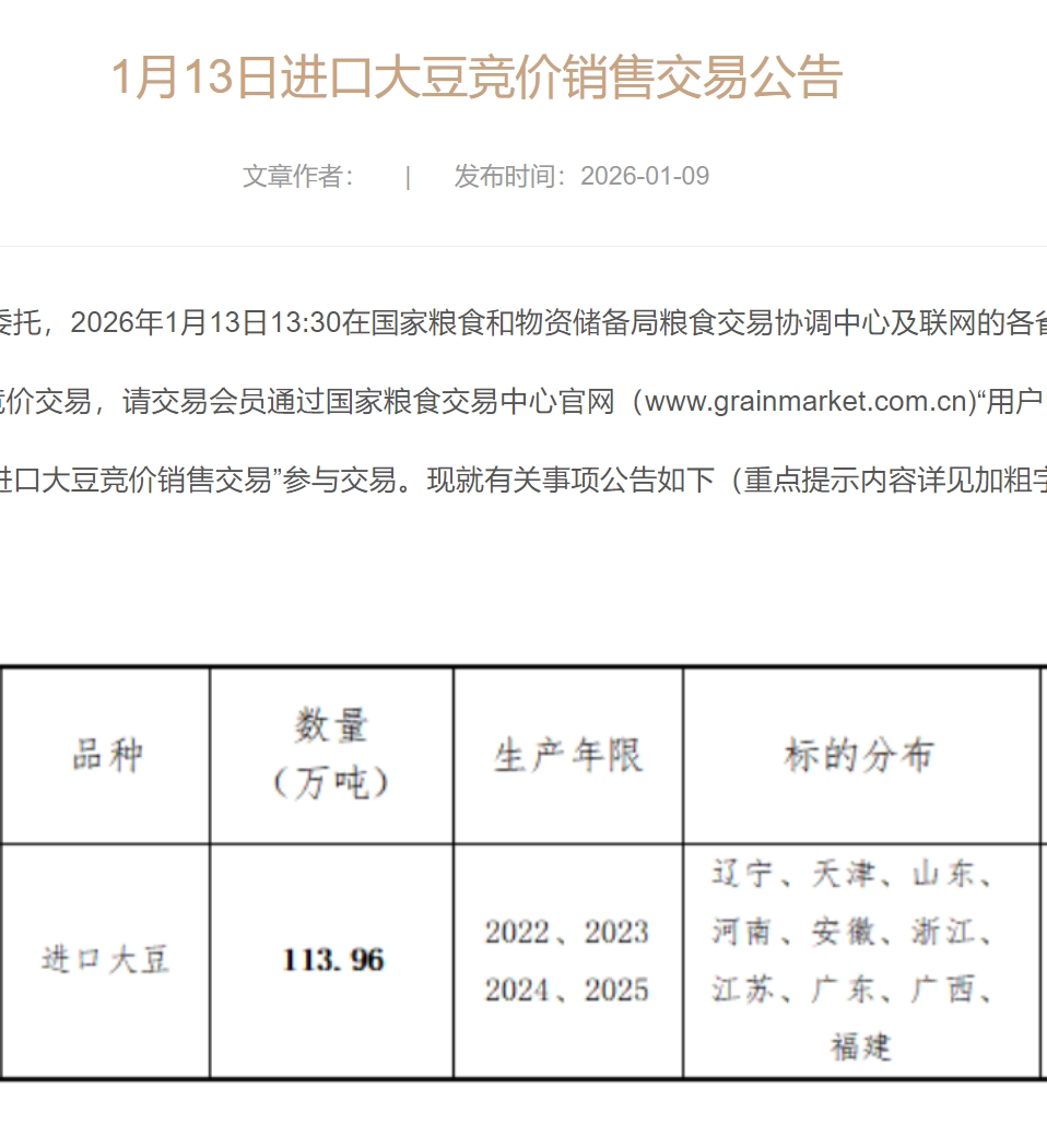 - 国储大豆双向竞价交易开启对于市场的影响分析2026-01-13