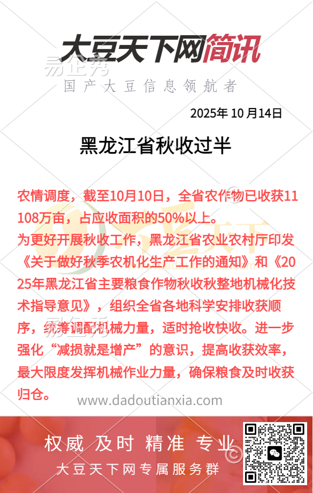 - 已收获11108万亩 黑龙江省秋收过半2025-10-14