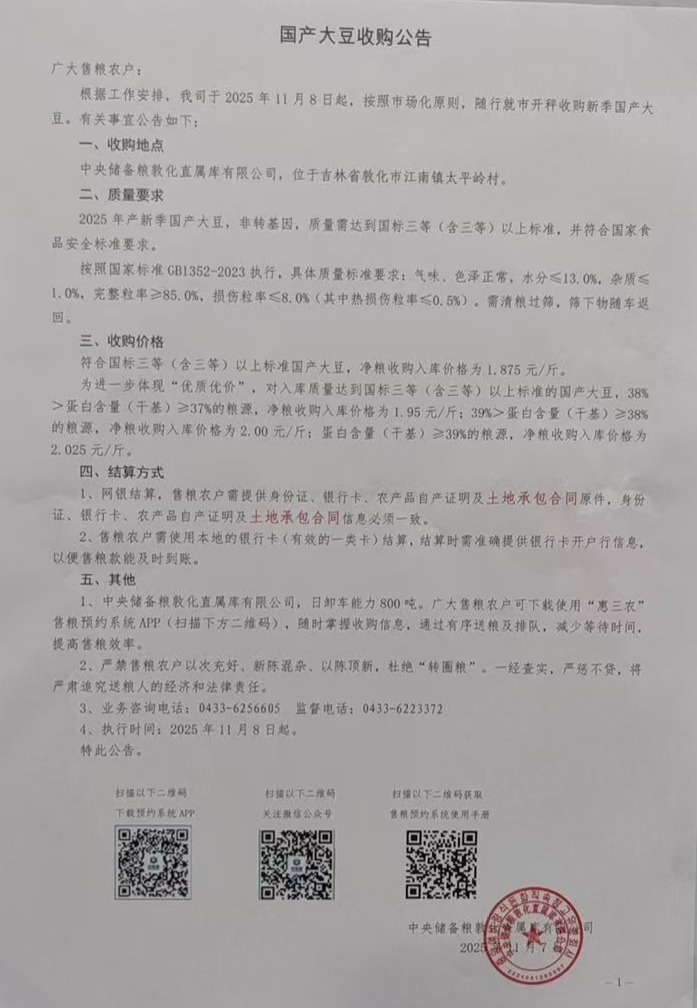 - 2025年新季国储大豆收购价格(持续更新中)2025-11-12