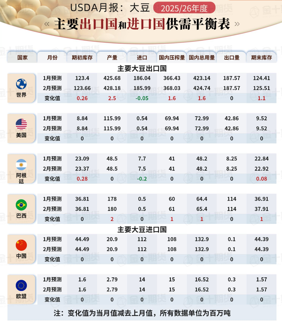 - 美国农业部调高2025/26年度巴西大豆产量和压榨预期2026-02-11